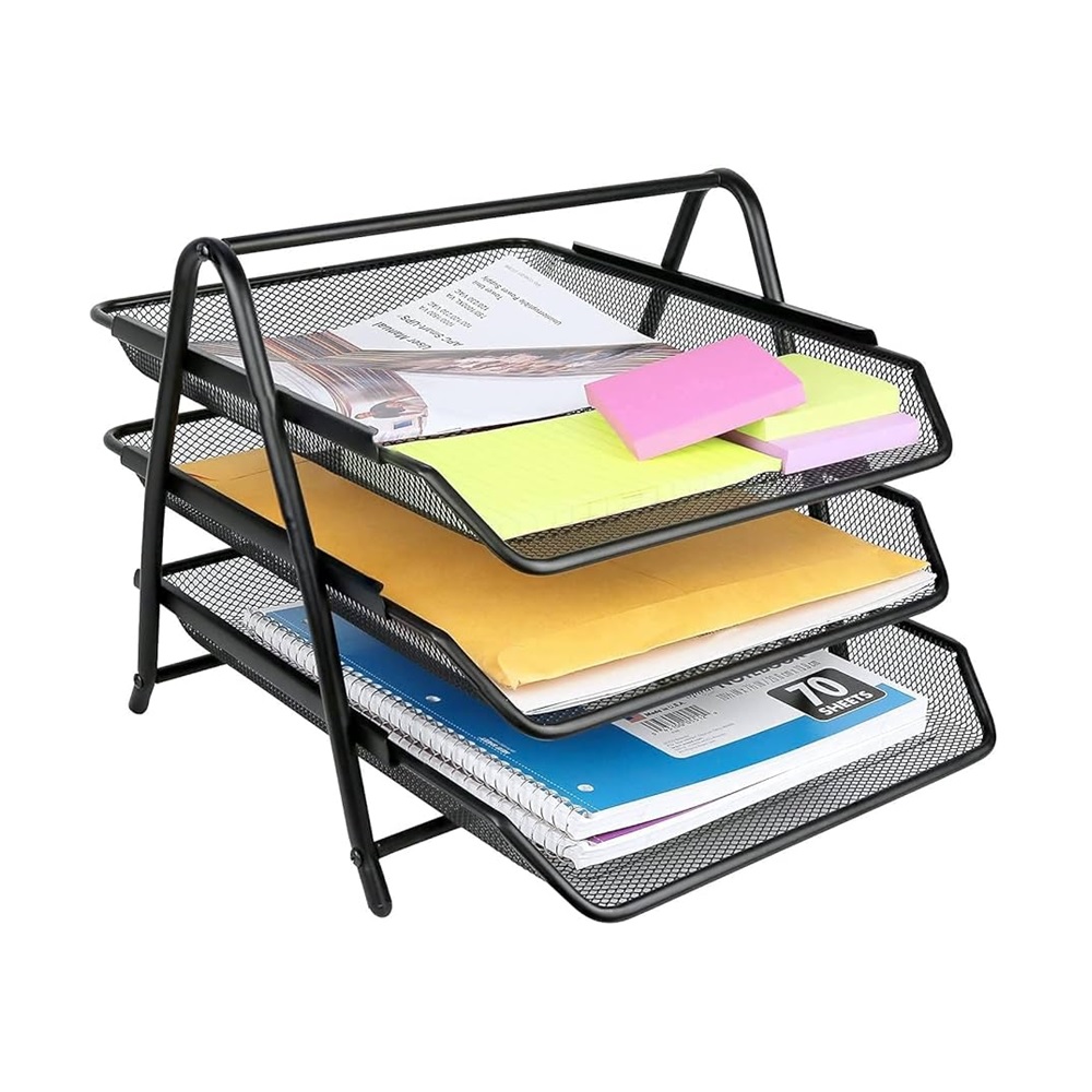 Saca un mayor provecho de tu área de trabajo con la bandeja de escritorio de 3 niveles, la solución de archivo vertical más robusta y elegante para oficinas en Caracas. Fabricada en malla de acero de alta resistencia, este organizador permite clasificar documentos, facturas y correspondencia de manera jerárquica, manteniendo su escritorio despejado y un flujo de trabajo constante en cualquier entorno profesional de Venezuela.